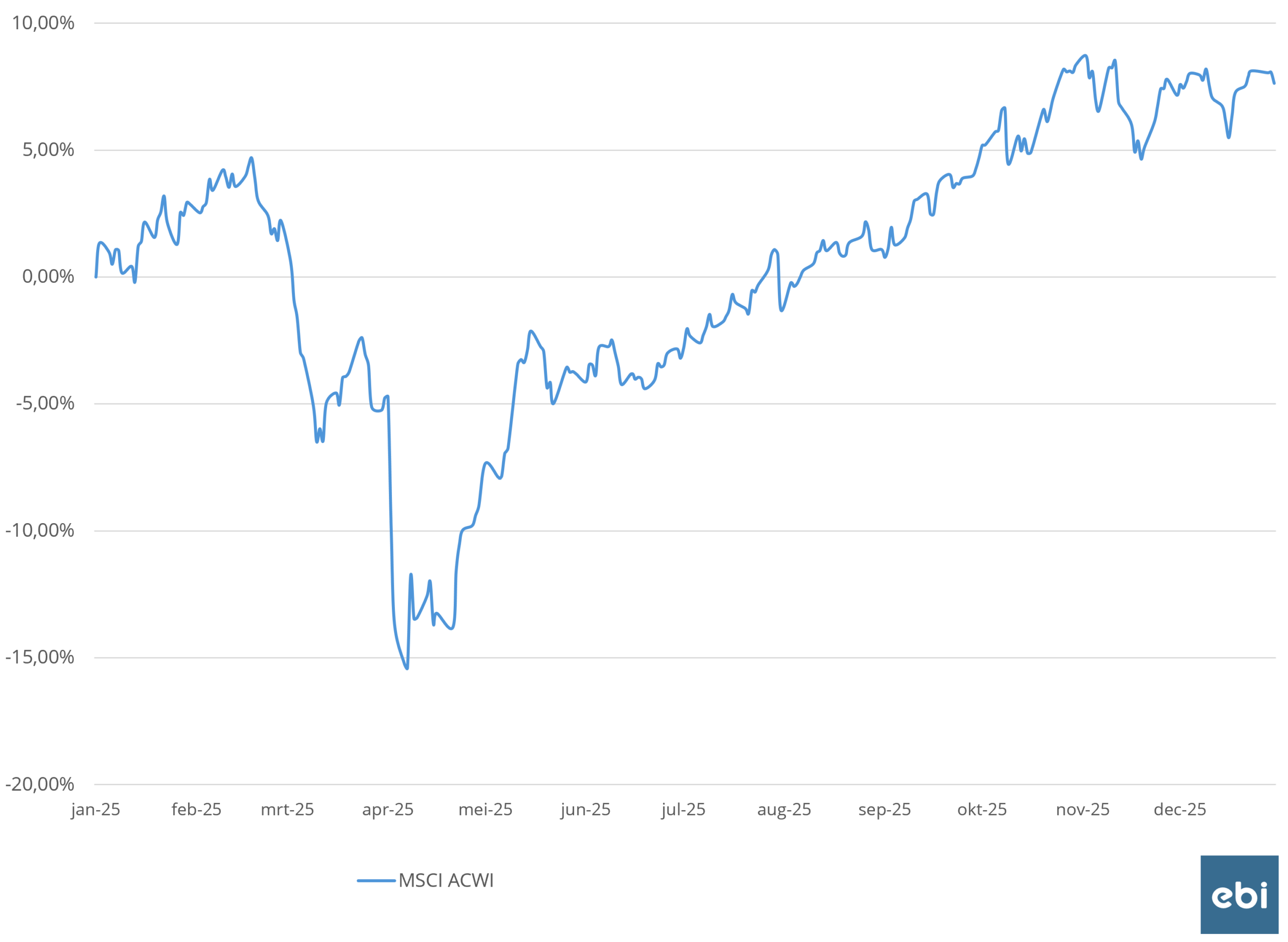 2025: Een ‘normaal’ gek jaar Laten we 2025 nog eens bekijken. Veel mensen ervoeren het als een ‘gek’ jaar. Gevoelsmatig klopt dat ook, want er gebeurde veel. Maar als je puur naar de cijfers kijkt, zie je iets interessants: de rendementen waren eigenlijk heel normaal. Het voelde misschien ongewoon door alle zorgen, maar het resultaat van de markt was dat niet.